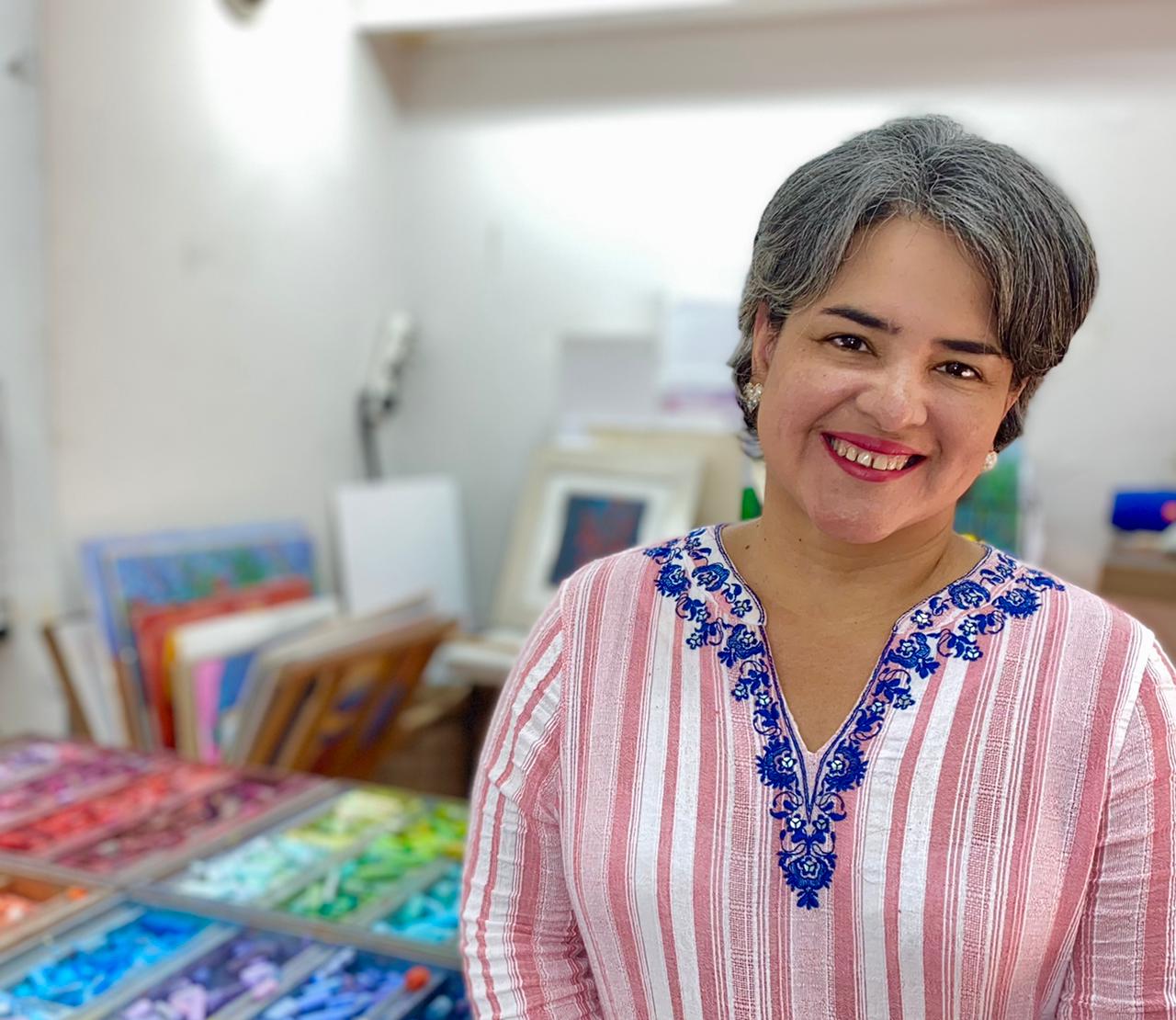 “Soy una panameña enamorada del color…Creo que la posibilidad de crear a través del arte es un regalo de Dios que no es solo para el artista, y por eso hay que ponerlo al servicio de los demás también. En mi obra hay una sola regla: que tenga propósito. Y para mí ese propósito es que mis pinturas hablen de alegría, de la belleza del ser, de redención, de lucha y superación, y sobre todo del amor que lo conquista todo y da pleno sentido a nuestra existencia.”
